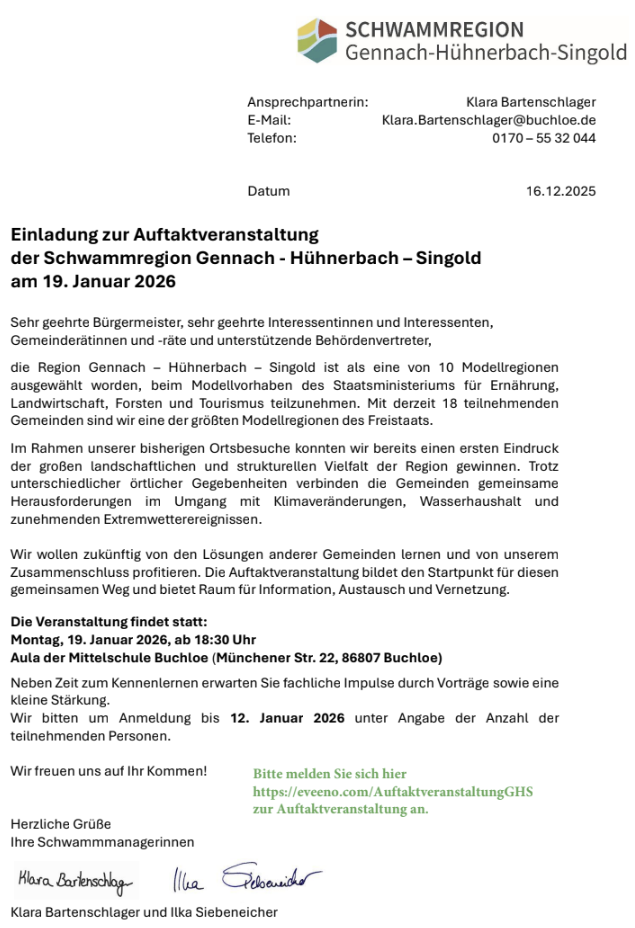 Einladung zur Auftaktveranstaltung: Schwammregion Gennach-Hühnerbach-Singold